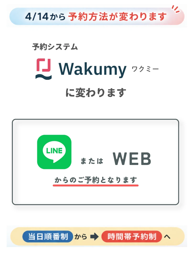 当院では、患者さまが少しでも快適に通院できるよう日々スタッフと話し合いながら診療体制の改善を行っています。今回の予約システムの変更も、定期的な通院がよりしやすくなることを目的としています。新しいシステムに慣れるまでの間、待ち時間や院内の流れなどでご不便をおかけする場合もあるかもしれません。より良い診療環境を目指してまいりますのでご理解とご協力をいただけますと幸いです。