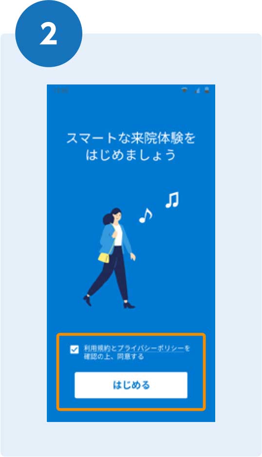 利用規約等を確認、チェックを入れて「はじめる」を押します。