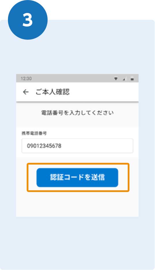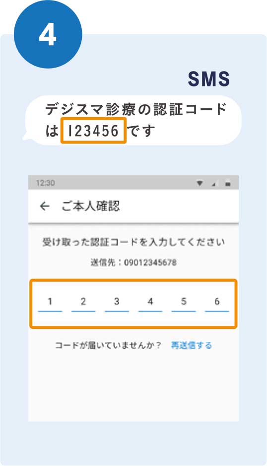 ショートメール(SMS)に届いた6桁の数字を入力します。